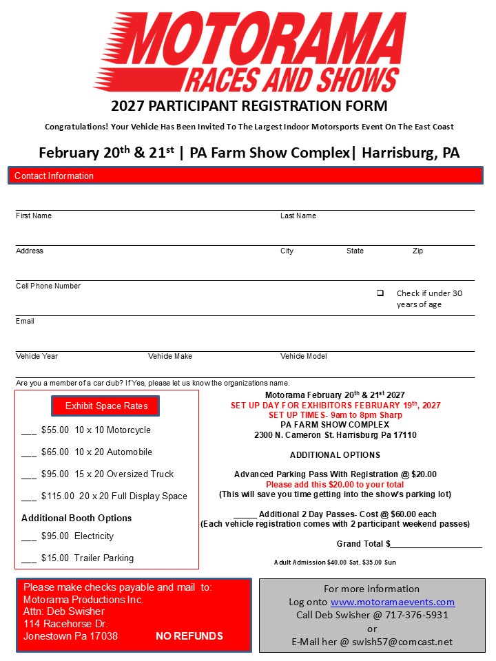 Registration for Motorama Races & Shows open 11/1/26 at 7:00PM est.