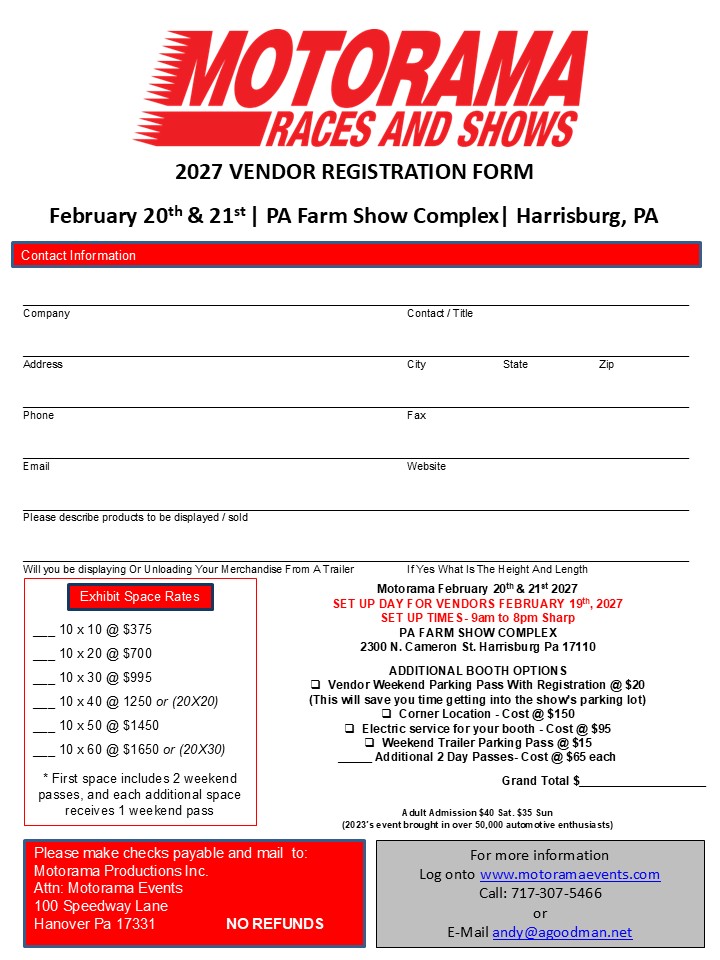 Registration for Motorama Races & Shows open 11/1/25 at 7:00PM est.